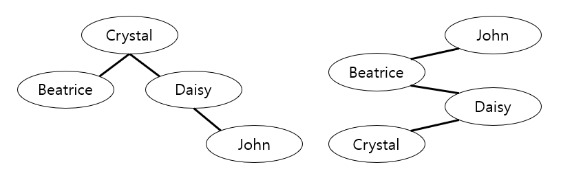보면 알겠지만 여기서는 크다, 작다의 기준은 알파벳 ABC순 정렬이다. B로 시작하는 단어가 C로 시작하는 단어보다 왼쪽에 위치하게 되는 것이다.